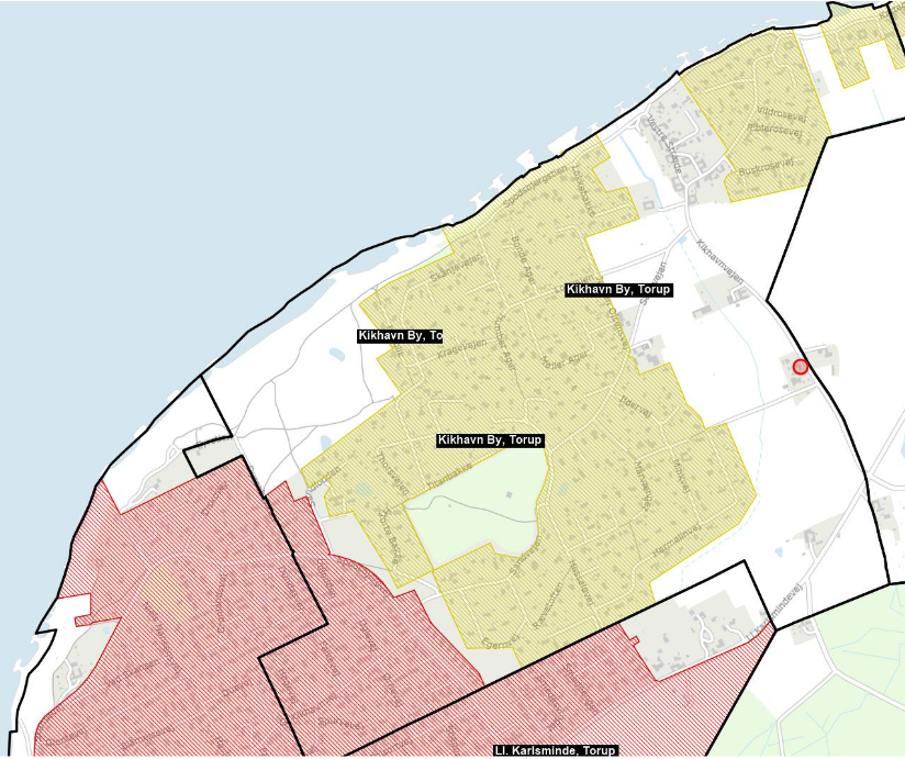 (Sommerhusområde = Gult område indenfor Ejerlav = Kikhavn By, Torup)